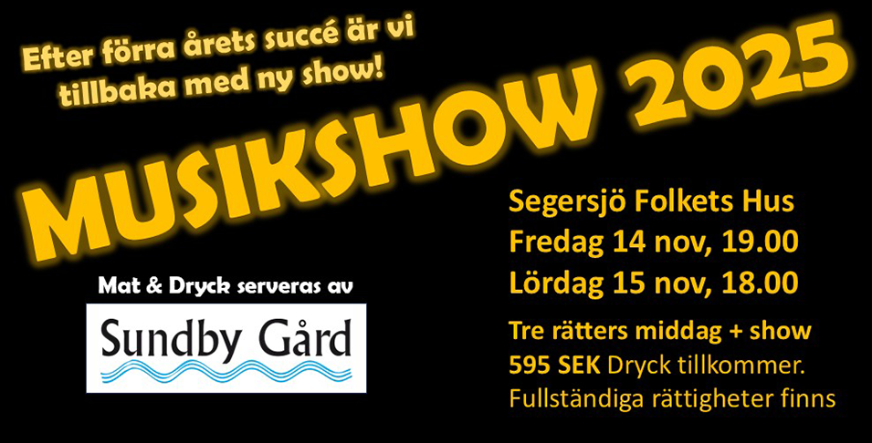 ![]() Vi hade så otroligt roligt förra hösten när vi körde vår jubileumsshow, så vi bestämde oss för att göra en ny show i år! Den "Wallmans-inspirerade" showen utspelar sig runt om i lokalen medan ni sitter och äter en utsökt 3-rättersmiddag. Precis som förra året så är det Teo Bjurholm med personal som står för maten (från restaurang Sundby Gård). Vi törs lova en helkväll med god mat, glädje och härlig energi! Boka era biljetter genom att skicka ett mail till biljett@domandra.com. OBS! Det går inte att köpa biljett på plats. Varmt välkomna till Segersjö Folkets Hus! |